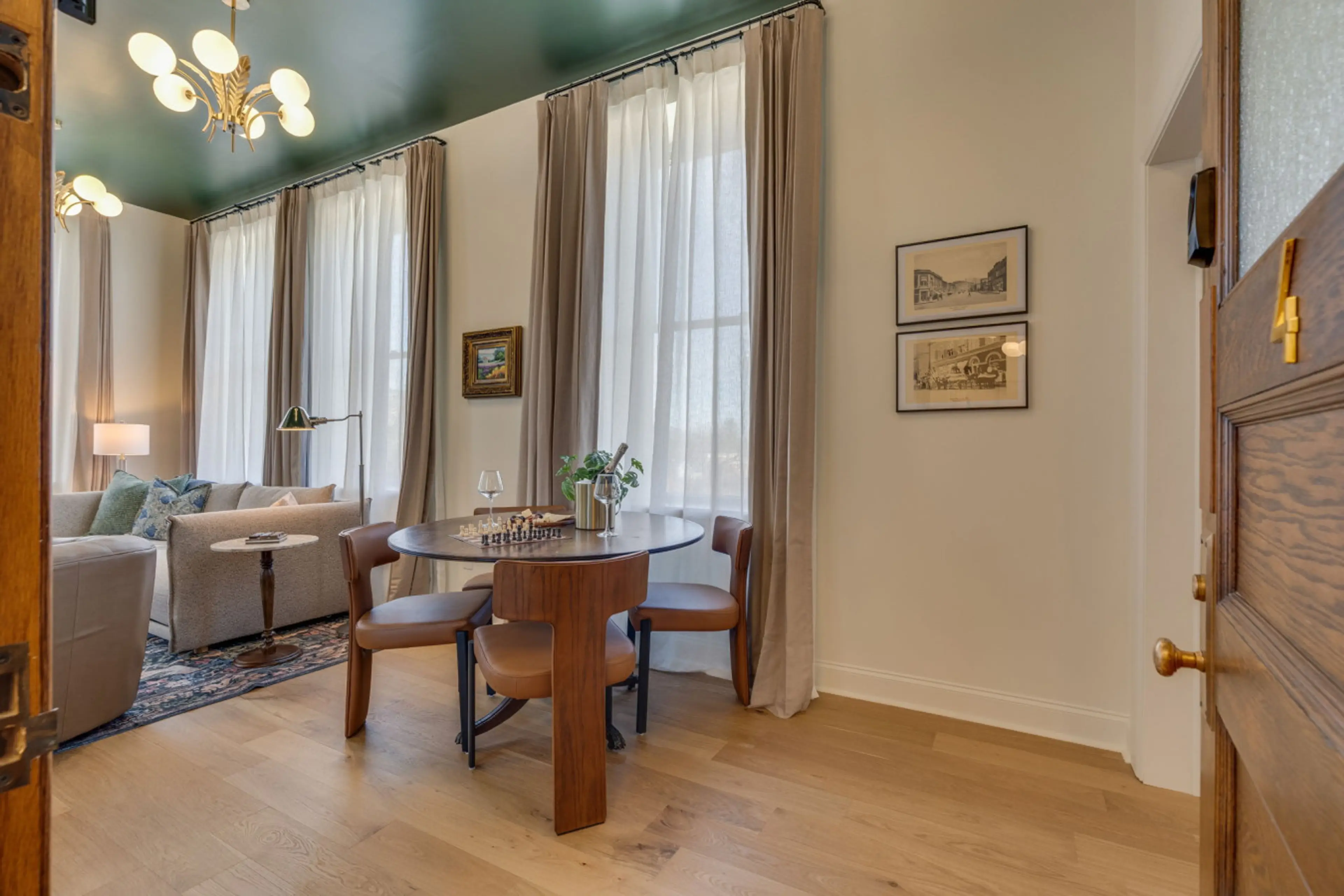 The Brady Suite is a three-room accommodation featuring an open floor plan connecting the Kitchen/Dining Area and the Living Room, along with a separate Bedroom and Bathroom. The kitchenette is equipped with a retro refrigerator/freezer, sink, granite countertop, hidden microwave, coffee maker with ...